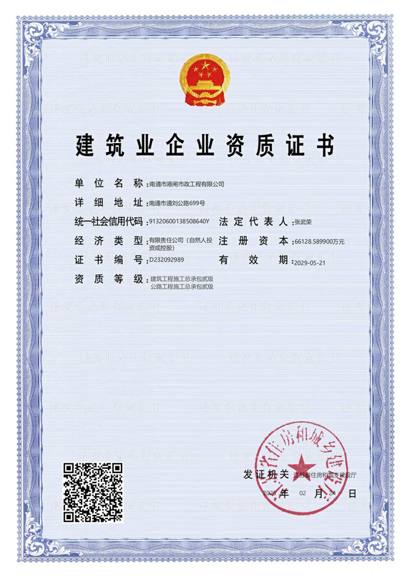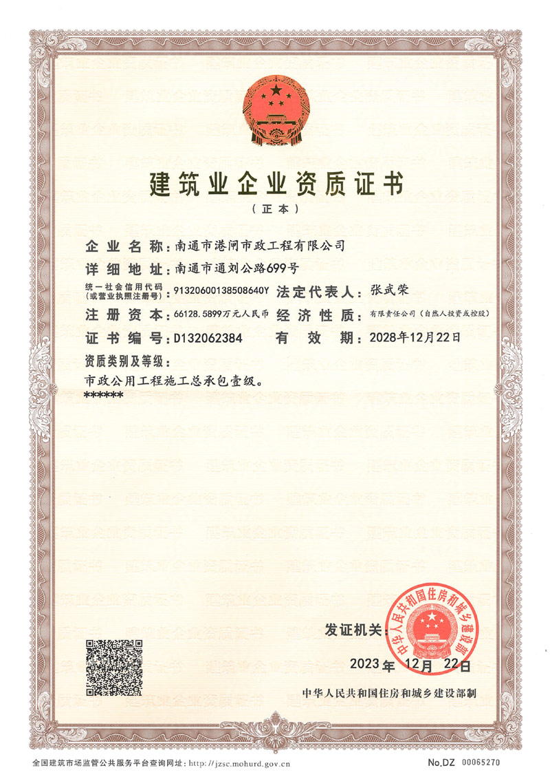 建筑業(yè)企業(yè)資質(zhì)證書(市政公用工程施工總承包壹級)