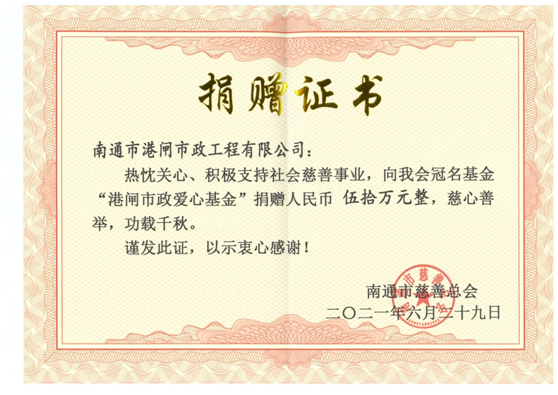 中國共產(chǎn)黨100年的光輝歷程,100年的風(fēng)風(fēng)雨雨,百載探索發(fā)展,中華大地滄桑巨變,艱辛成就偉業(yè),奮斗創(chuàng)造輝煌,如今我們的幸福生活離不開先輩們,是他們付出生命,奉獻(xiàn)了青春,才有了繁榮富強(qiáng)的屹立世界之林的中國。值此建黨100周年之際,公司組織開展“不忘初心、牢記使命”系列活動向建黨百年獻(xiàn)禮:6月26日,公司參加由南通市市政和園林局主辦的“頌歌獻(xiàn)給黨”歌詠比賽。6月29日,公司向南通市慈善總會港閘市政基金會和崇川區(qū)慈善會港閘市政基金會分別再注資50萬元和20萬元;6月30日,黨支部組織“紅心向黨慶百年,慈善捐贈暖人心”一日捐活動,捐贈活動在“沒有共產(chǎn)黨就沒有新中國”的歌聲中結(jié)束。